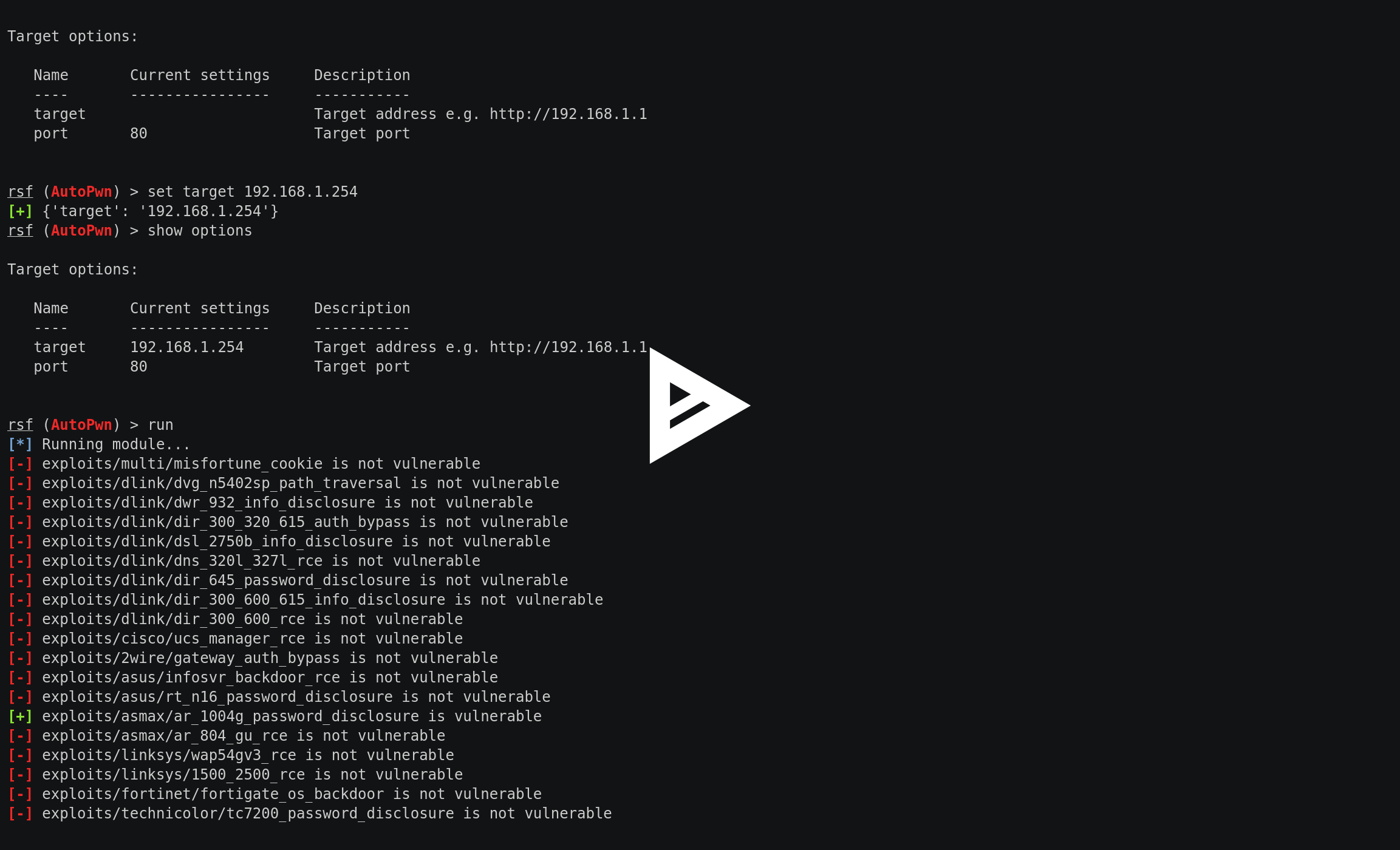 https://github.com/reverse-shell/routersploit/blob/master/README.md Share this:Share Click to email a link to a friend (Opens in new window) Email Click to share on Facebook (Opens in new window) Facebook Click to share on X (Opens in new window) X Click to share on Reddit (Opens in new window) Reddit Click to share on LinkedIn (Opens in new window) LinkedIn